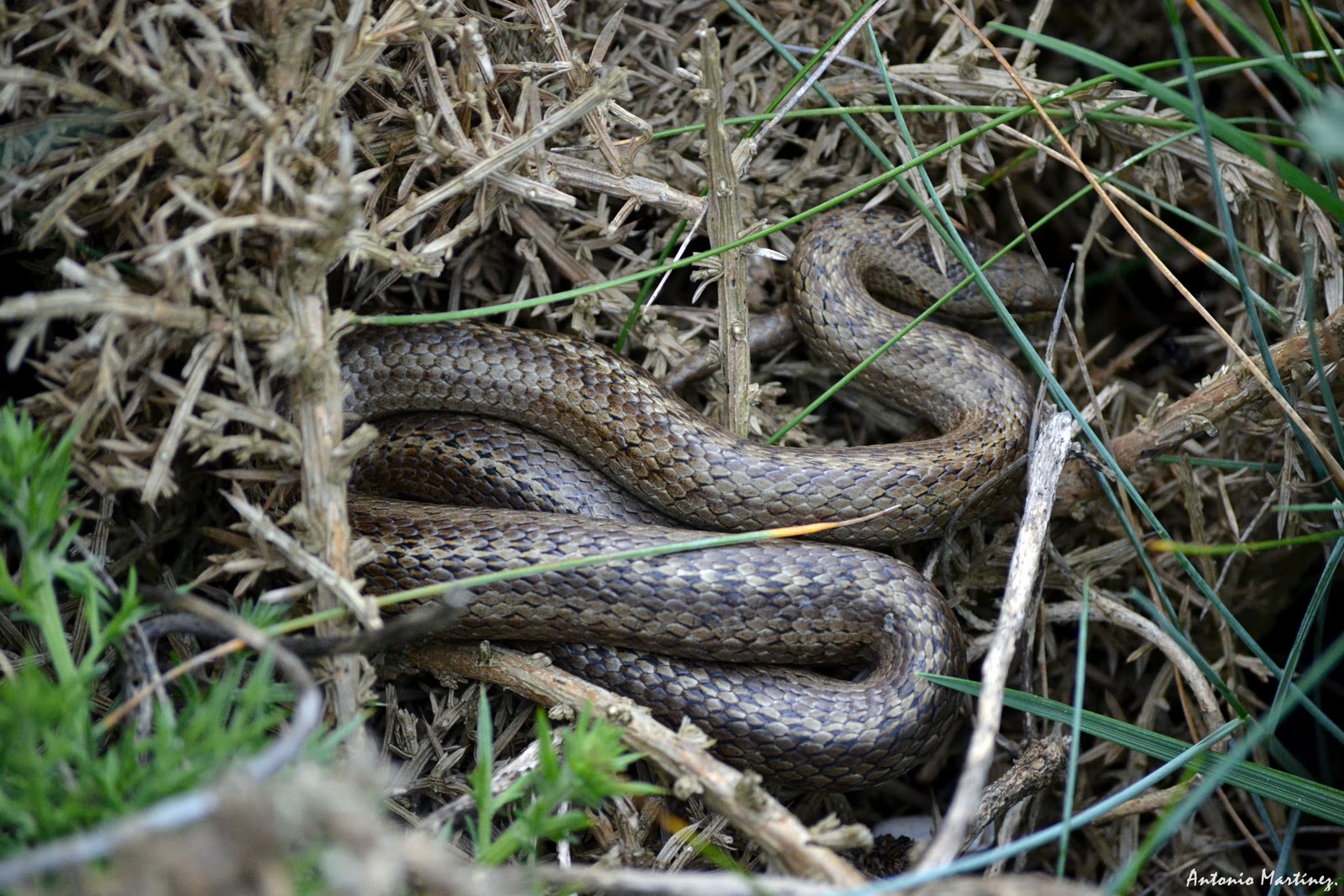 Bueno despois deste rollo que vos acabo de botar toca falar da realidade dos ofidios galegos, pois a triste realidade é que cobra ou víbora que aparece diante dunha persoa é cobra ou víbora morta, e isto non é máis que o resultado dunha falta de información sobre estes reptís que na maior parte dos casos son totalmente inofensivos. En Galicia podemos repartir os ofidios en dous grupos, o das cobras (culebridae) no que, exceptuando o cobregón (Malpolon monspessulanus), son todas totalmente inofensivas, non posúen veneno e a súa denticción é aglifa. O cobregón posúe dous dentes inoculadores de veneno na parte posterior-superior da mandíbula (opistoglifa), pero non ten un sistema de inxección a presión polo que nin sequera unha mordedura de 2-3 minutos tería un efecto maior ó dunha avéspora, e non creo que naide teña pensado quedar coa serpe colgando todo o día.